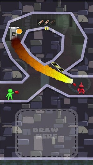 3、简单轻松的关卡历险,用火箭参与对战,一笔不断地画出火箭路线。