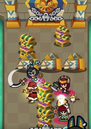 1、防御力作战放置挂机搜集财富,打开箱子再次进行探索,英雄们协同来进行作战。