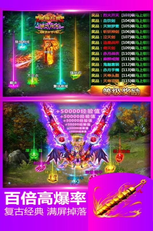 游戏中超高的爆率以及丰厚的福利让你无需氪金就可以获取想要的神装。