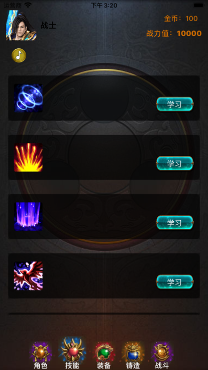2.将角色、技能、装备、铸造、战斗等功能分开罗列,若是玩家有需要,查找无难度。