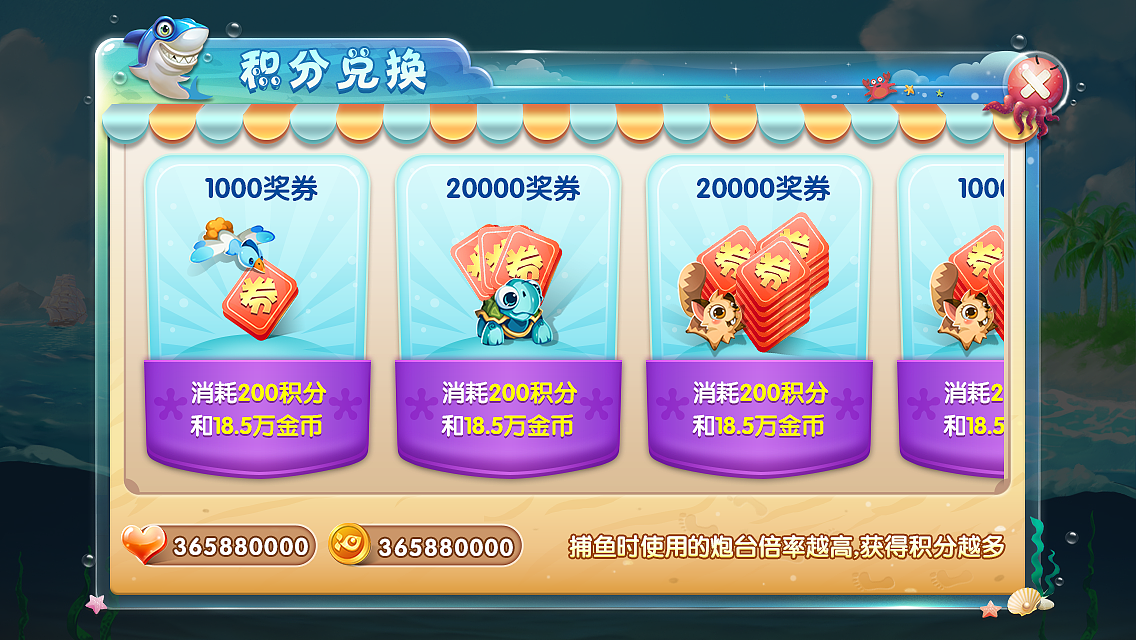 2、凭借捕鱼来积分,不同的鱼种积分也是不一样的。
