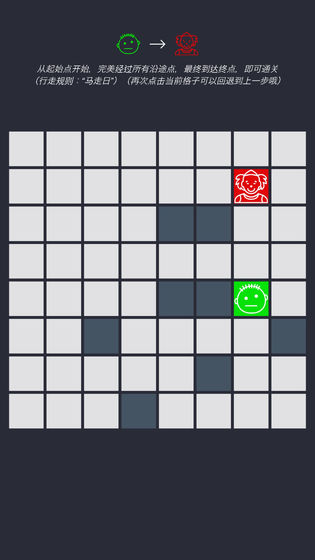 人生之路是由Kaka Ku Games Inc.xl推出的一款略微烧脑的休闲闯关手游,游戏采用非常简约的画面风格,玩法简单有趣,游戏中玩家需要根据象棋中马走日的规则,移动棋子至目标位置即可过关。感兴趣的玩家赶紧下载人生之路体验吧!