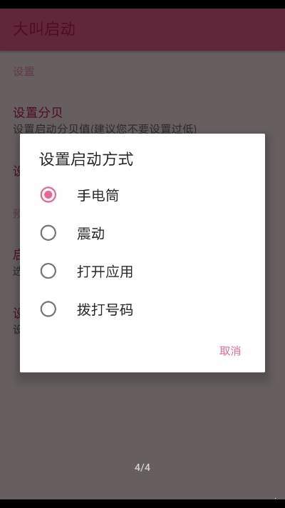 大叫启动app是一款声音控制软件,你可以自定义分贝,多少分贝启动什么软件,随你设置,然后等你发出这么多分贝的时候你就可以启动这个软件,比如手电筒,打电话等等,非常的实用,快来一起下载使用吧!