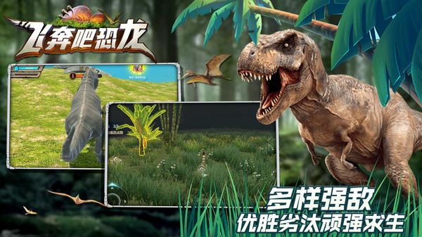 飞奔吧恐龙是一款经典的恐龙世界游戏,游戏中玩家可以体验超多的玩法,各种恐龙玩家都可以进行饲养,玩家可以见证恐龙是如何长大的,模拟养成的玩法结合3d效果相当的趣味,游戏画风十分写实,喜欢就来下载飞奔吧恐龙吧。