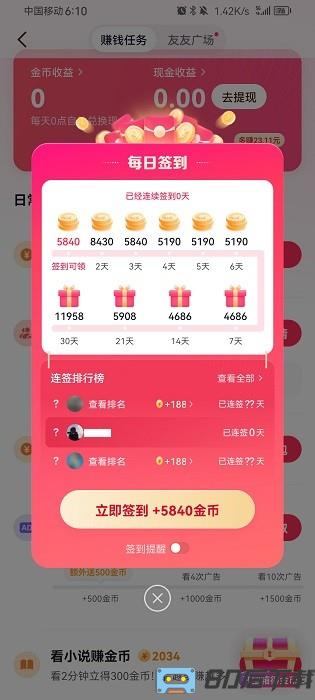 3、在该页面会有很多抖音极速版的获得金币小任务,用户只需要完成获得金币,用金币来兑换现金即可哦!