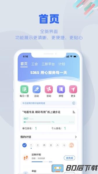 s365国网公司健步走app是一款为广大员工提供的生活服务应用和走路计步平台,用户不仅可以能够观看比赛的视频,还能够运用相关资讯。更好推动工会工作创新。记录你的运动跑步数据,实现全民爱运动的气氛。