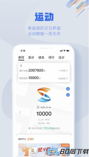 2. 个人身体健康指数测评运动主题活动积极开展等多种功能,用户每天的数据排名都会显示。更好地利用互联网开展文体活动。
