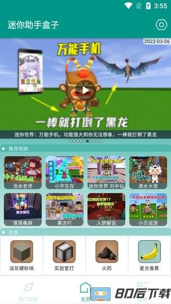 迷你助手盒子手机版是专门为迷你世界的玩家们设计的游戏辅助app,从基础的物品合成,房屋建造到各种常见的问题和攻略,都可以在这里找到,界面设置有趣实用,带给大家全新的游戏操作手感!