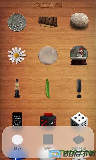 解压屏幕集合了许多小玩具和生活琐事,包括骰子、石头、魔球、陀螺、开关、乐器、齿轮、沙包、黑板、键盘、除草、切菜、挤牙膏、拉链、削铅笔、海滩玩沙子等等。
