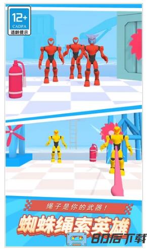 2、玩家在游戏中,可以体验绳索以及蜘蛛网作战带来的轻松愉快,贴切感受空中飞行的快乐与刺激,收获别样的游戏体验。