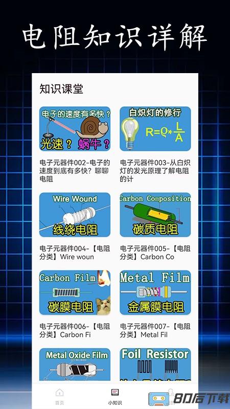 ·应用内还包含电阻相关的视频讲解知识;