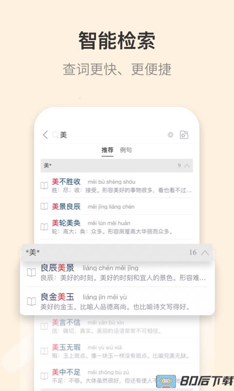 成语大词典是一款富有权威性的现代成语软件,用户可以使用关键字查询就能够在软件上面查询到带有关键字的各种成语,不仅如此,软件为了照顾一些还在上学的小朋友,开设了成语知识解析,在小朋友查询成语的同时,也能够学习到成语的知识。