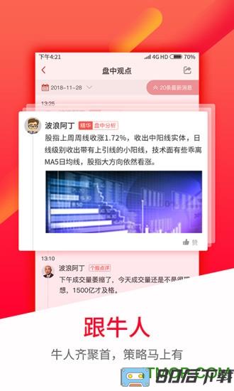 【行情】满足用户对大盘行情数据、个股行情数据的查看,且有精选指标注入。其中行情中的自选股功能与选股功能的打通,不让优质的股票从指尖溜走。