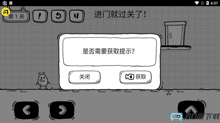 16、第十六关:往右走门会跑起来,然后在界面点击开始按钮,游戏会暂停,返回游戏即可