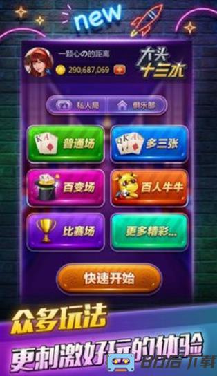 十三水APP是一款非常刺激的棋局对战类游戏平台,该游戏有着丰富的玩法,并且能给玩家带来非常多的快乐,在市面上也是众多玩家喜爱的平台之一,该游戏玩家可以尽情的享受不同的对战模式,可以自创房间邀请好友,也可以随机匹配路人局,让玩家沉浸在游戏中,该游戏也会根据玩家的胜率设定排名榜,榜上有名的玩家也代表自身的实力和水准更加的厉害,玩家想要提高胜率,就需要对游戏中的技巧和玩法快速学习,通过不断的实战累积经验,就能够达到一定的实力水准。