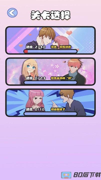 情人节恋爱喜剧游戏带来了好玩的休闲恋爱游戏,经典答题闯关玩法,需要玩家完成每天的任务,游戏中可以让体验到恋人之间的点点滴滴,各种结局,并且玩家还可以自行选择关卡挑战,解谜恋爱,体验各种丰富剧情故事!