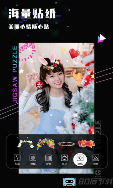 2、还可以编辑文字,随意调整比例,操作简单,可将拼贴照片组合成拼图软件;
