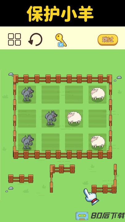宠物大乐园游戏是一款非常好玩的休闲益智类冒险闯关游戏,游戏中玩家将移动栅栏守护小羊的安全,灵活的变换策略保护小羊不受伤害,在挑战过程中你会遇到各种麻烦,你需要灵活的变换思维,找到正确的守卫小羊方法,解锁新的挑战!