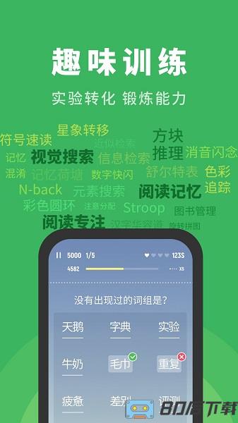 3、游戏式趣味练习:基于哈佛大学与哥伦比亚大学的认知科学研究理论而设计的20款趣味十足的游戏任务,让你在快乐中不断提升阅读/读书的各项能力,真正做到“玩”有所得;