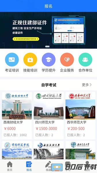 凯奇特种作业人员练题软件包含了质监局、应急管理厅、人社局、住建厅的特种作业人员及特种设备操作人员的练题题库,以及作业人员的在线报名,可以选取离你最近的考点进行网上报名,从而进行线下考试,