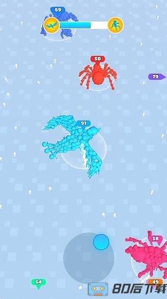 我要变强大手机版游戏操作简单,拥有简约的画面风格设计,玩家不断组合出各式各样的动物造型,在场景中与其他对手较量,最终成为场上最强的物种吧。游戏支持离线游玩,适合打发时间哦。