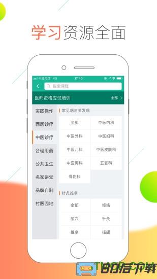 拥有西医诊疗、中医诊疗、实践操作、合理用药、应试教育、公共卫生等模块。
