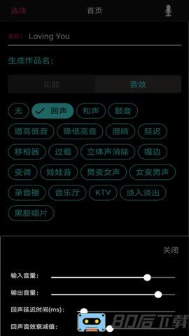 3.添加音效:音乐效果添加,可为音乐添加和声、回音、混响、高低音、唱片、娃娃音、女变男声,男变女声等多种效果