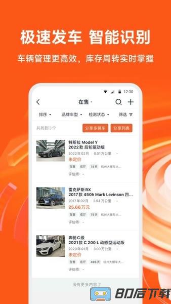 1、评估师系统便捷的评估信息录入,并且包含大数据车价参考,还可以将车型与潜在客户快速匹配;