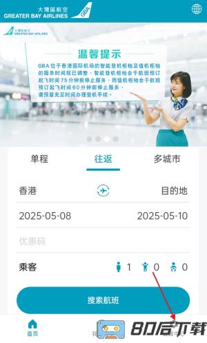 大湾区航空app是一款便捷实用的航班服务平台,提供机票预订、航班查询、在线值机等多种功能,帮助用户轻松安排行程。随时查看航班动态,快速办理登机手续,让出行更加高效便捷。立即下载,享受流畅的航空服务体验!