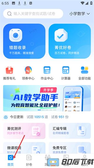 1、首页提供试题检索与错题管理功能,每日更新海量题库并配备AI智能辅导。