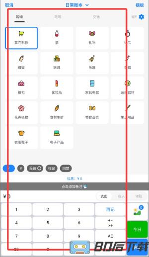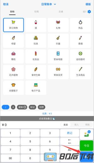 3、根据消费类型填写金额与备注信息,可选择对应的分类标签与支付方式。