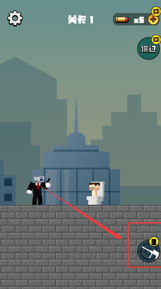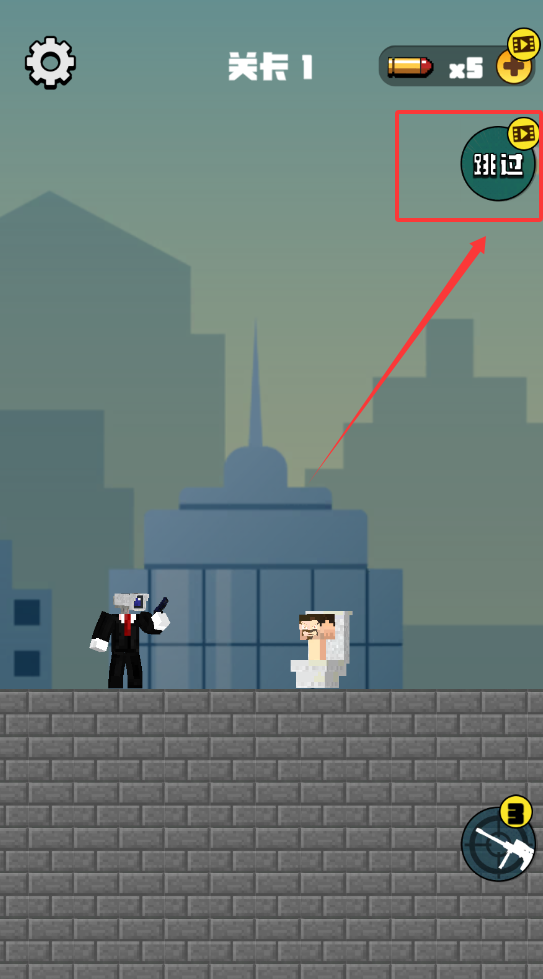 1、进入游戏后首先完成基础射击训练,通过虚拟摇杆控制角色移动,并利用瞄准按钮锁定马桶人目标。