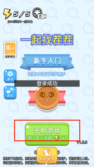 1、启动程序后,点击首页中央的"开始游戏"按钮,系统将载入首组对比图像与基础操作提示界面。