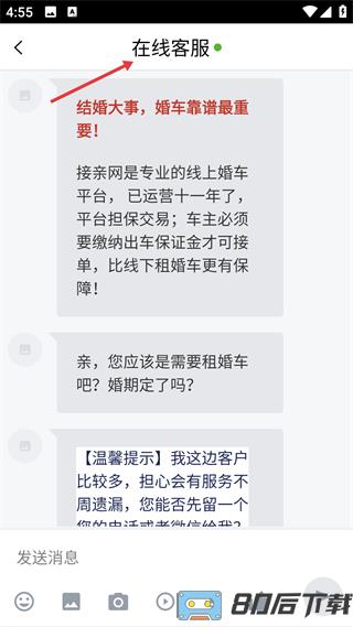 2、客服页面提供在线咨询与平台保障说明,协助用户确认婚期等具体需求。