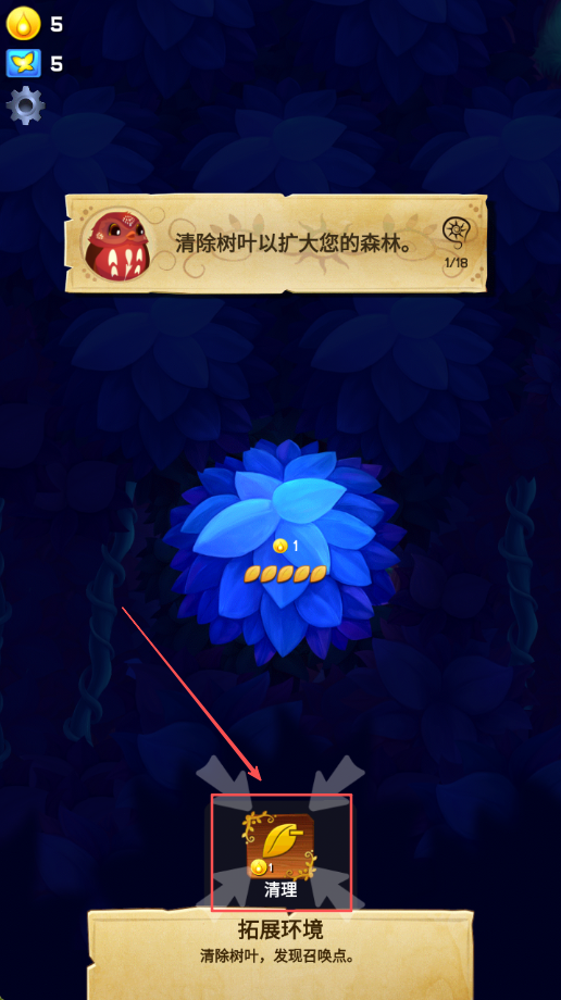 2、清除树叶扩大森林活动空间,通过清理环境可以解锁新的区域,为更多蝴蝶提供栖息地,增加收集的品种和数量。