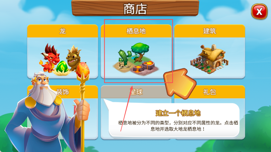 1、进入游戏后点击商店建造栖息地,这是游戏的基础设施建设环节,需要合理规划栖息地位置和类型,为后续恐龙养殖做好准备。