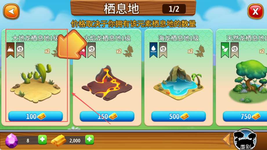 2、选择第一个栖息地消耗100金币,初始栖息地价格适中,适合新手玩家起步,需要合理分配初始资金确保后续发展。