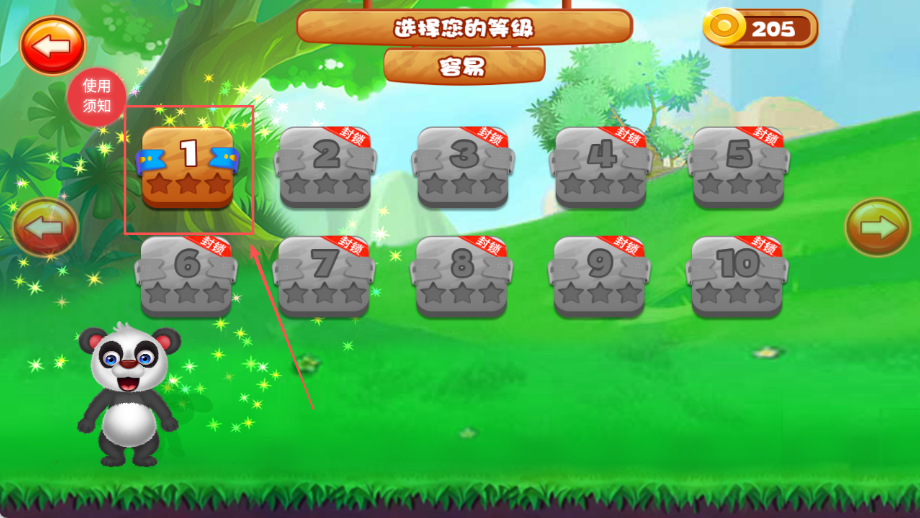 1、选择容易模式进入熊猫关卡开始游戏,这个模式适合新手玩家熟悉游戏规则和操作方式,为后续挑战打下基础,循序渐进学习。