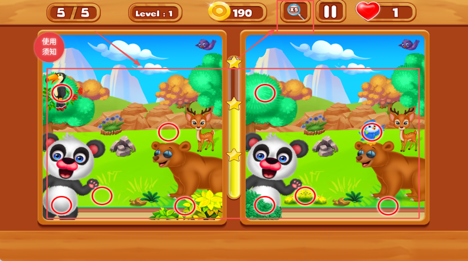 4、在规定时间内找出所有不同点完成关卡,注意时间管理,既要保证准确性又要兼顾效率,争取获得更高分数评价。