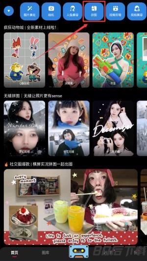 1、打开软件进入首页后,找到并点击“拼图”功能模块。