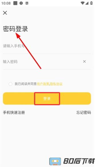 3、密码登录需输入手机号与密码并同意协议,支持密码找回与手机快速注册通道。
