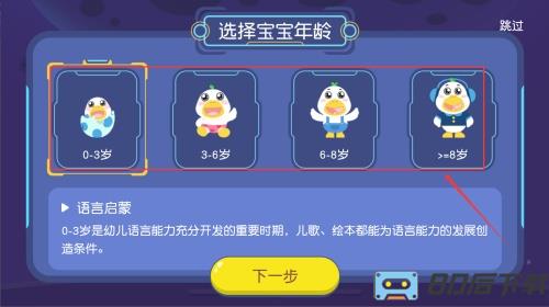 2、根据宝宝的实际成长阶段选择对应年龄,系统将据此智能匹配学习内容。