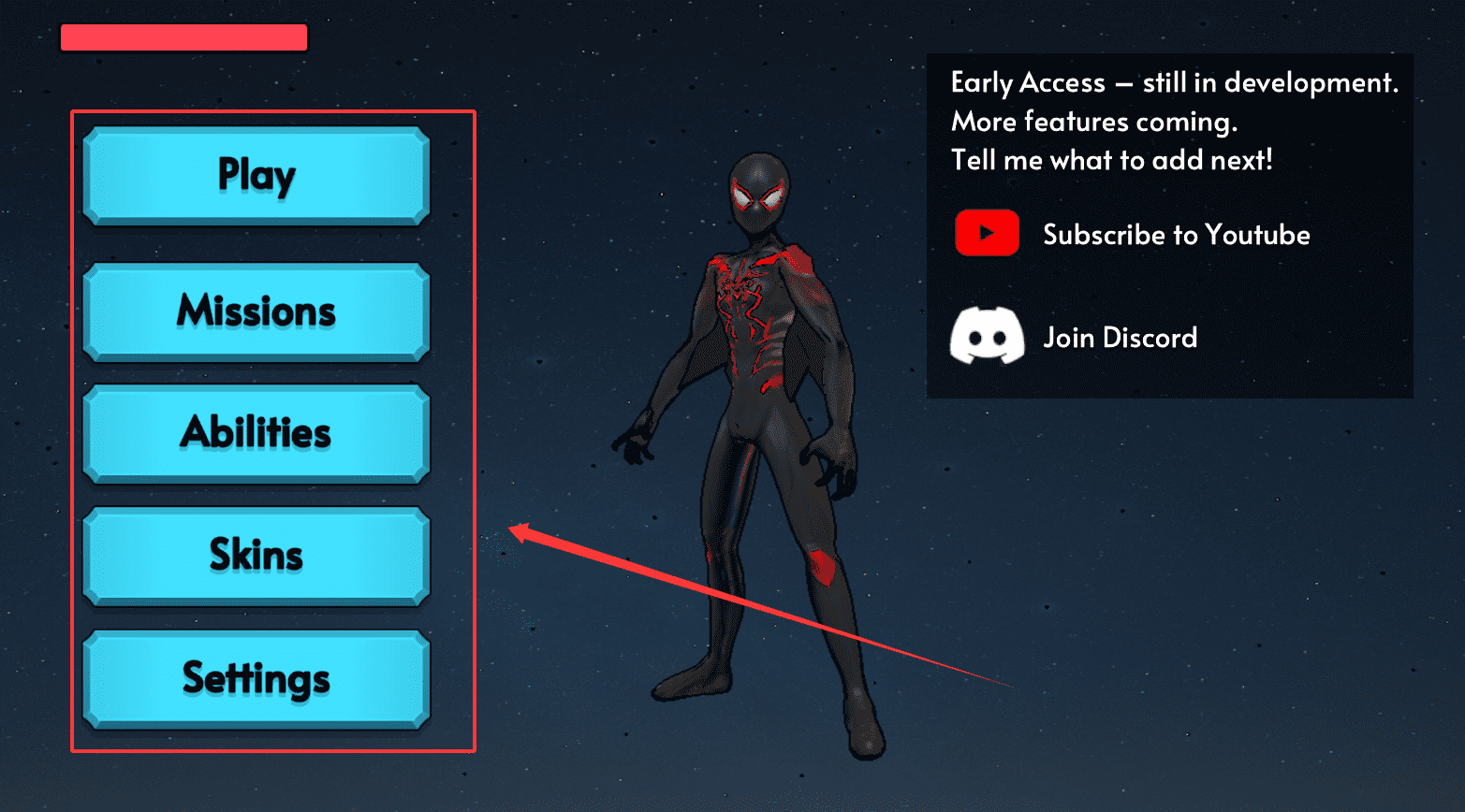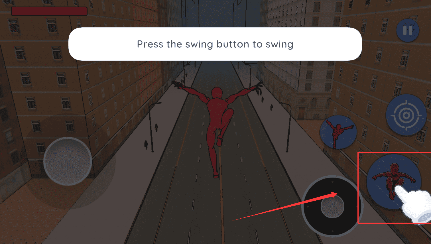 1、进入游戏后,首先需要熟悉核心移动操控,包括发射蛛网进行摆荡,在垂直墙面上快速奔跑。