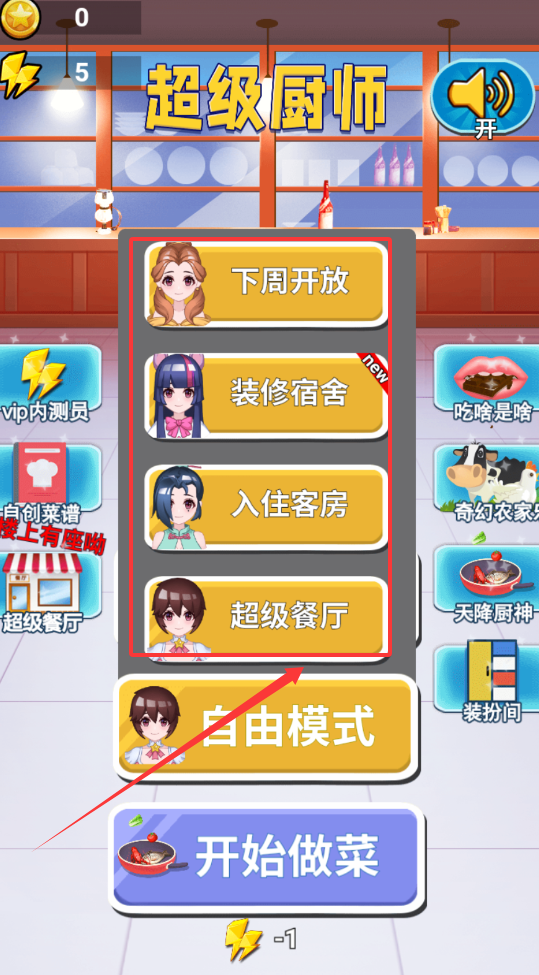 1、玩法流程始于观察与决策阶段,玩家需在评委入场后选择本次挑战的菜系方向,并进入装扮界面为角色搭配合适的厨师服以获取。