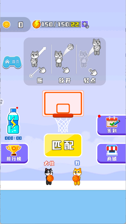 4、点击"开始匹配"按钮,系统将自动匹配对手,开启趣味投篮对决。