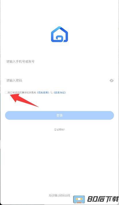 2、进入登录界面后,需勾选同意用户服务协议及相关条款,确保账号正常使用权限。