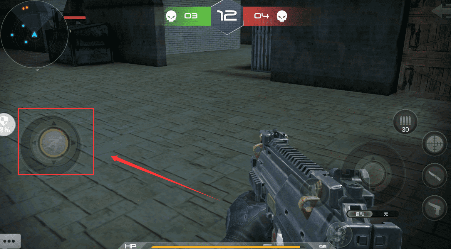 3、进入战斗画面后,需迅速熟悉虚拟摇杆与射击按键布局,这些操控图标负责角色移动、瞄准与开火等核心动作。