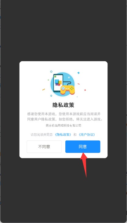 1、启动游戏后,请先仔细阅读并勾选同意用户协议与隐私政策,完成初始设置。