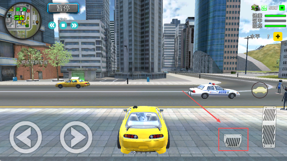 2、遇到红灯或紧急情况时点击刹车键让车辆减速停止,避免发生碰撞和事故,在追逐战中巧妙使用刹车可以甩开追兵,提高驾驶安全性和战术性。