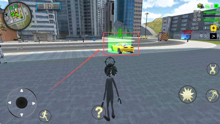 1、控制火柴人角色在街道上移动,找到可以驾驶的车辆靠近,车辆包括汽车、摩托车、卡车等不同类型,选择喜欢的载具开始城市冒险。